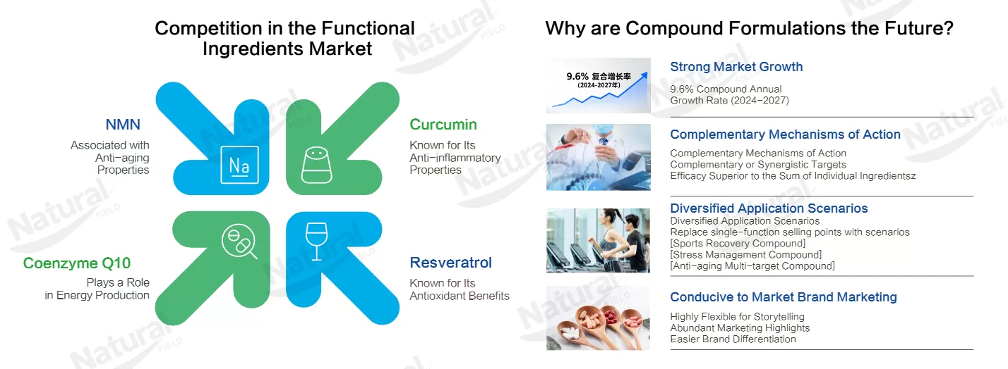 Modern nutraceutical formulations increasingly combine multiple active ingredients, particularly in areas such as healthy aging, metabolic support, and immune health.